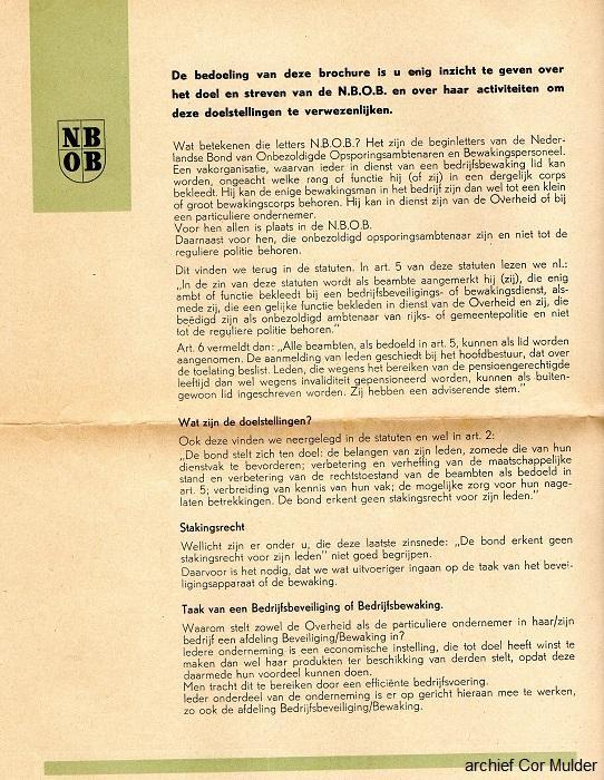 was het NBOB (Nederlandse Bond voor Onbezoldigde Opsporingsambtenaren en Bewakingspersoneel, opgericht in 1947.