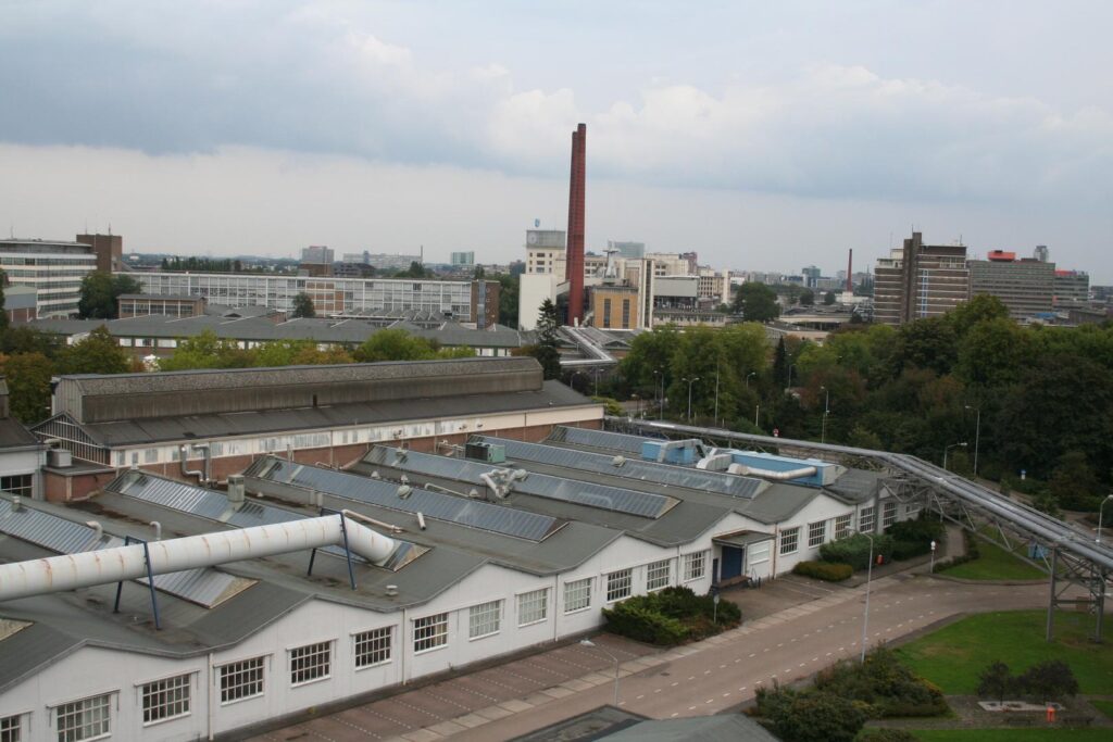 Dit is een foto vanuit RAF naar de hoofdingang strijp 3 Dit ook omdat het Veemgebouw met houten opbouw te zien is.